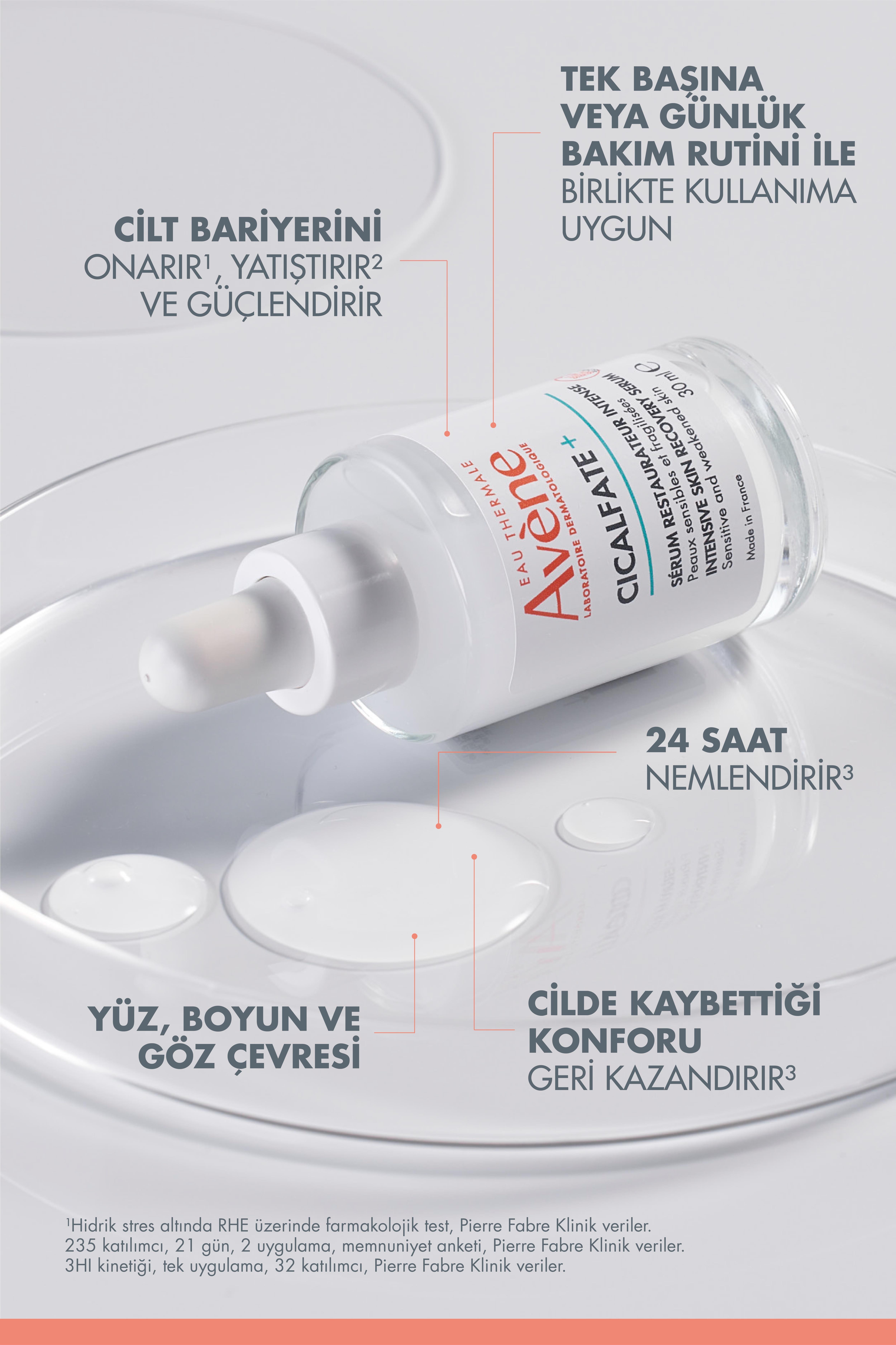 Cicalfate+ Intensive Serum Onarıcı ve Güçlendirici Cilt Bakım Serumu, içeriğindeki Avène Termal Su, TRP-Regulin ve Provitamin B5 ile hassas ciltlere kapsamlı bir bakım sunar. Cildin kendi kendini onarma yeteneğini GERİ KAZANDIRIR.* Cilt bariyerini ONARIR** ve GÜÇLENDİRİR. Anında ve kalıcı olarak gerginlik ve rahatsızlık hissini YATIŞTIRIR.