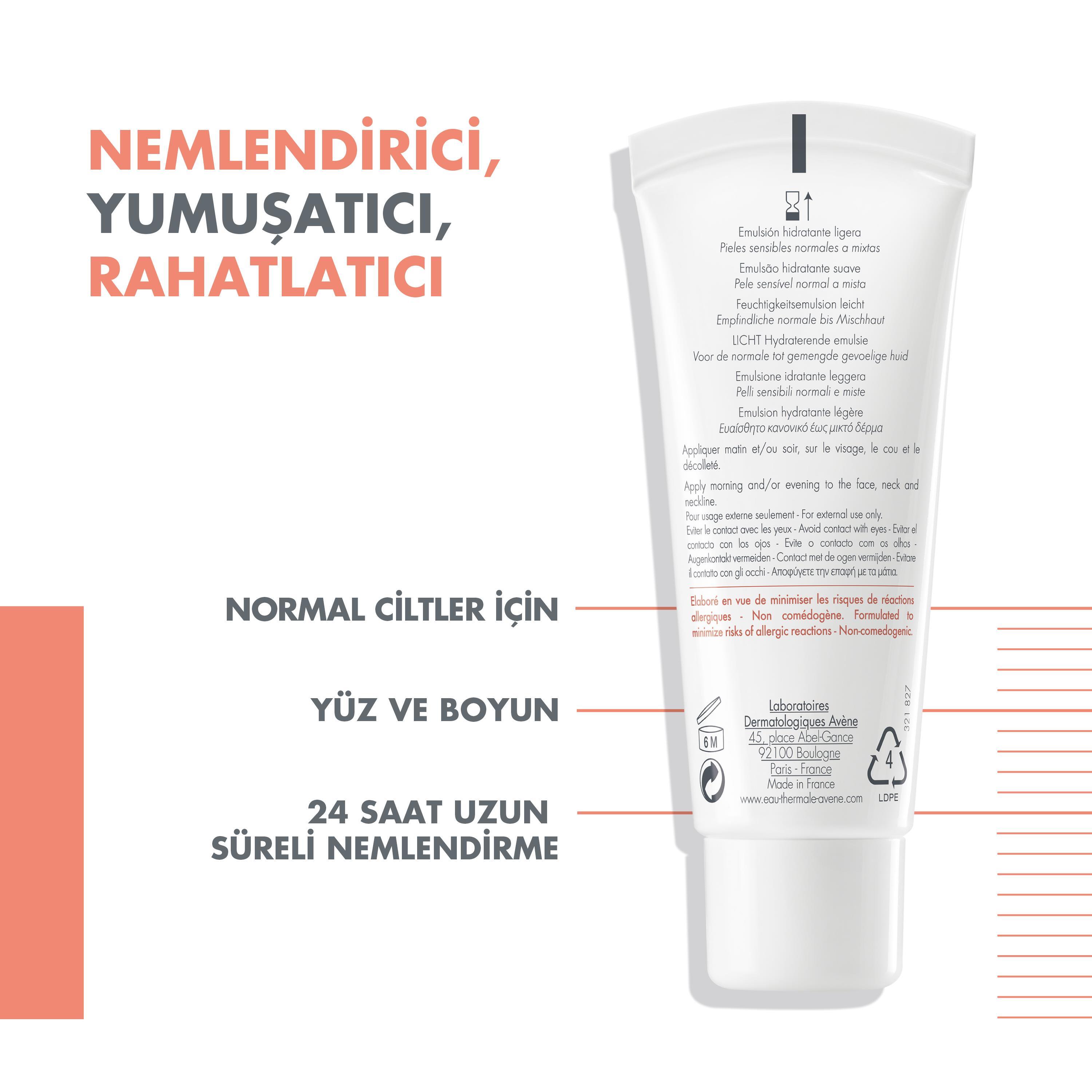 Cildin sahip olduğu doğal nemini koruyarak, içeriğinde bulunan Avene Termal Su sayesinde cilde rahatlık hissi verir.